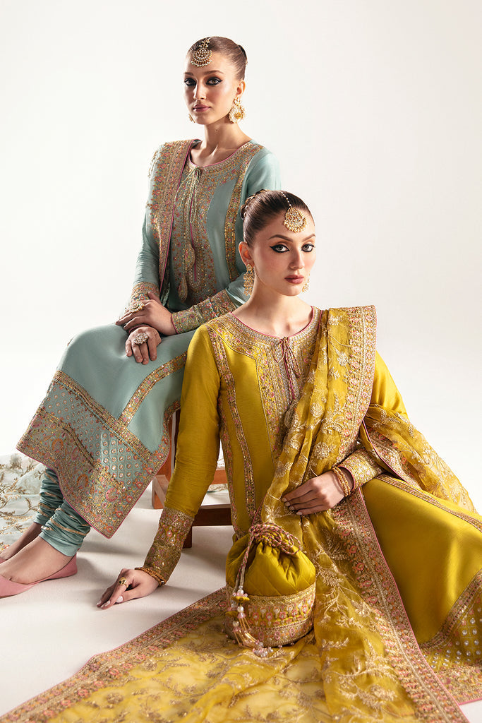 Unleash vibrant elegance with our Parrot Korean Rawsilk Ensemble. This stunning ensemble, in the lively hue of parrot green, combines the luxe feel of korean rawsilk with a chic chooridaar for a flattering silhouette is paired with an organza intricate Jaal Dupatta, adorned with mesmerizing patterns that elevate your style game. Perfect for those who dare to stand out in a crowd, this ensemble is a celebration of tradition and modern allure. Get ready to turn heads and make a statement at any occasion.
